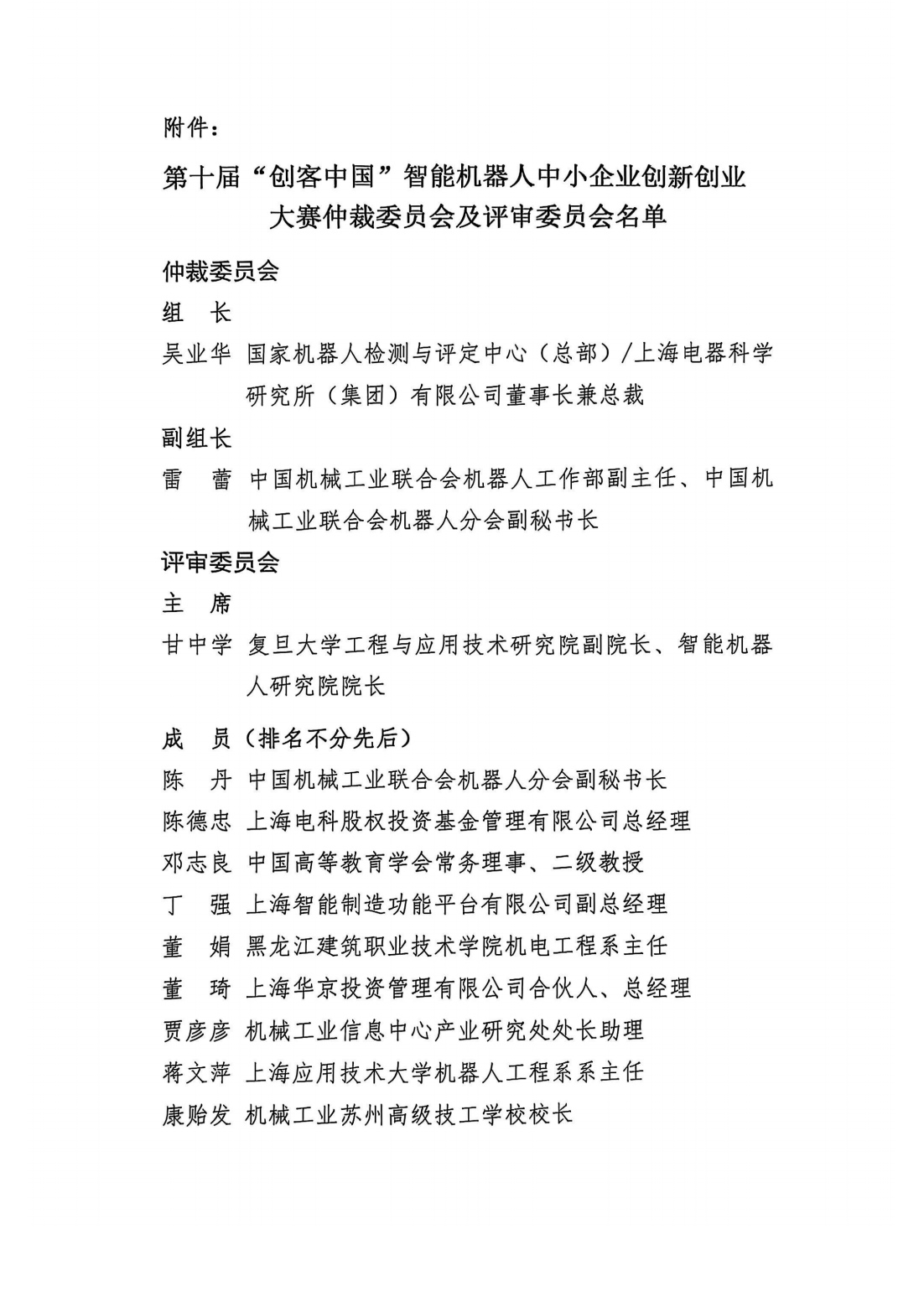 关于公布第十届“创客中国”智能机器人中小企业创新创业大赛仲裁委员会、评审委员会名单的通知