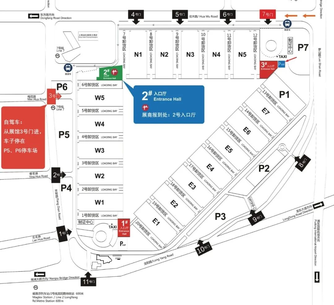 由上海新国际博览中心“2号入口厅”进入展馆(浦东新区龙阳路2345号,近地铁7号线花木路站),本次展会仅开放2号登录大厅(北厅),所有观众均在2号厅报到领取证件进入展馆。