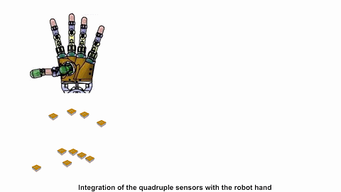 在研究完机器手在抓取不同物体时的最常接触位置后,该团队在机器手的 5 个指尖和手掌上,安装了 10 个传感器。