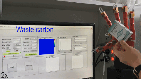 随后,再用七种垃圾的数据集去训练机器手。通过多感知信息的机器学习,机器手可以融合不同数据,从而去准确识别不同垃圾。