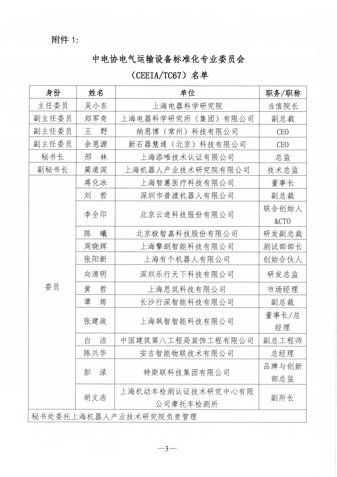 2022年10月20日,中电协[2022]162号文件下达了《关于设立中电协电气运输设备等2个标准化专业委员会的通知》,同意设立中电协电气运输设备标准化专业委员会(CEEIA/ TC67),秘书处挂靠单位为东升国际(中国)机器人有限公司官网。
