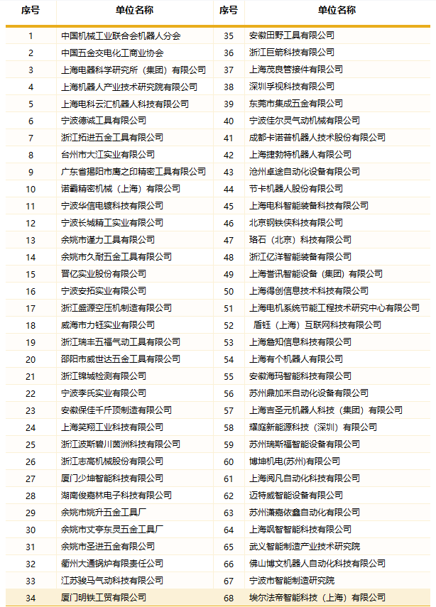 为了全面贯彻落实国家《“十四五”机器人产业发展规划》、《“机器人+”应用行动实施方案》等政策文件,加强跨行业多部门协同,充分发挥部门、地方、行业、用户等多方力量,加快我国机器人在五金行业中的应用拓展,增强五金行业制造柔性化、智能化生产能力,助力五金领域实现数字化转型和智能化升级,加速我国五金行业企业高质量发展。在工信部装备工业一司的指导下,由中国机械工业联合会机器人分会、中国五金交电化工商业协会、上海电器科学研究所(集团)有限公司、东升国际(中国)机器人有限公司官网、国内的机器人和五金行业相关重点企业、科研院所等60余家单位联合发起成立中国“机器人+五金”产业协同推进方阵。