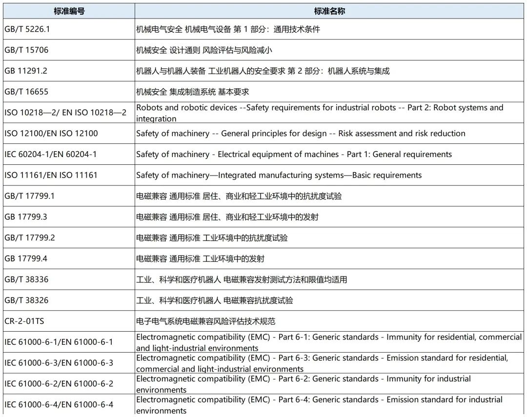 中国机器人CR认证标准汇总清单来袭!
